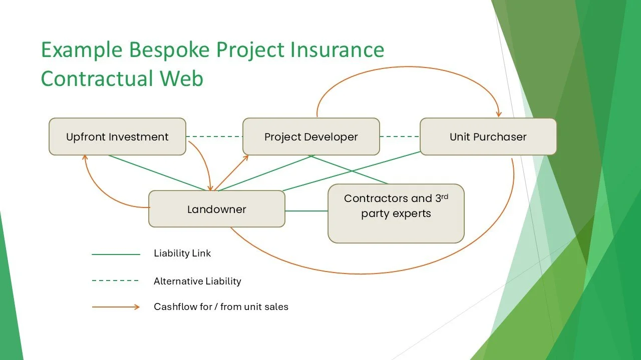 Integration with finance: Premiums can be priced into unit values, making insurance part of the project’s economic model and providing security for purchasers.